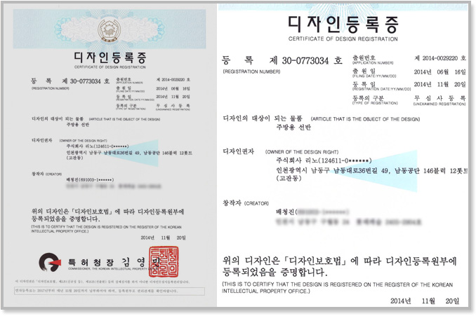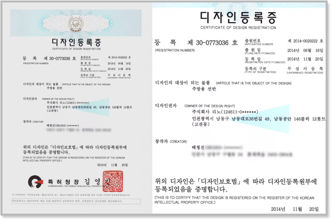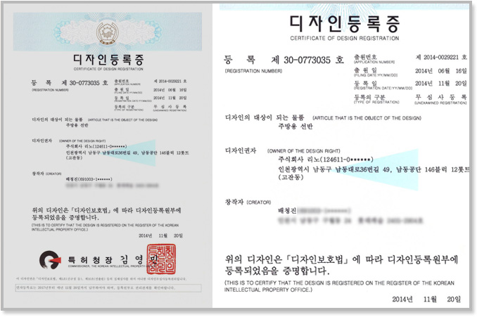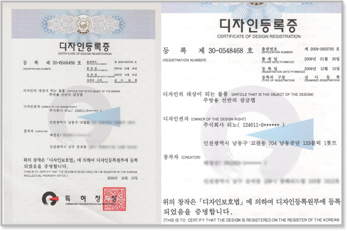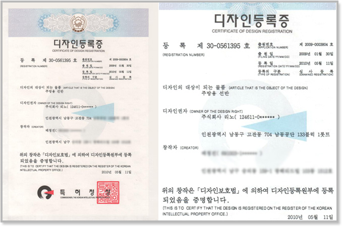 Certificate of 'kitchen shelf's lock cap..