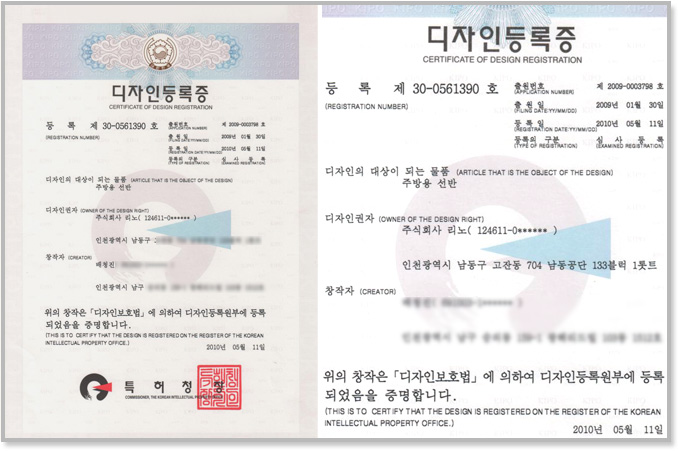 Certificate of 'cutting board' design re..