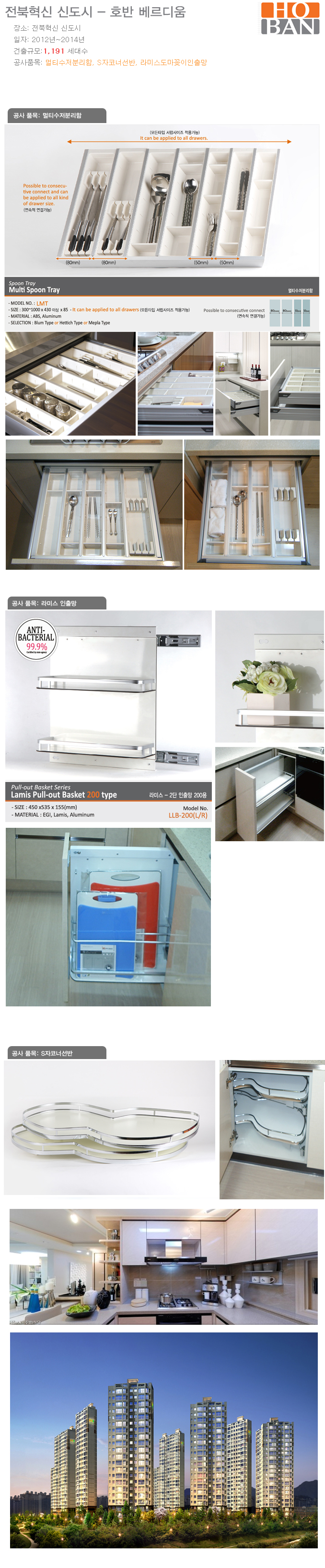 * Work item : Multi spoon tray, S type corner shelf, Lamis pull out cutting board rack